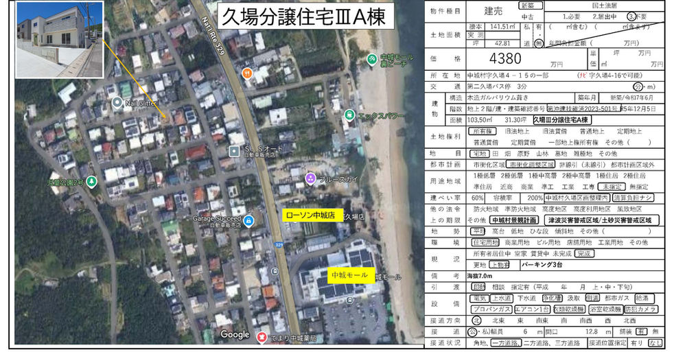 ★中城モール 徒歩7分 ★中城モール裏ビーチ 徒歩6分 ★コンビニ 徒歩4分 ★スカイスポーツランニングブルースカイ 徒歩3分